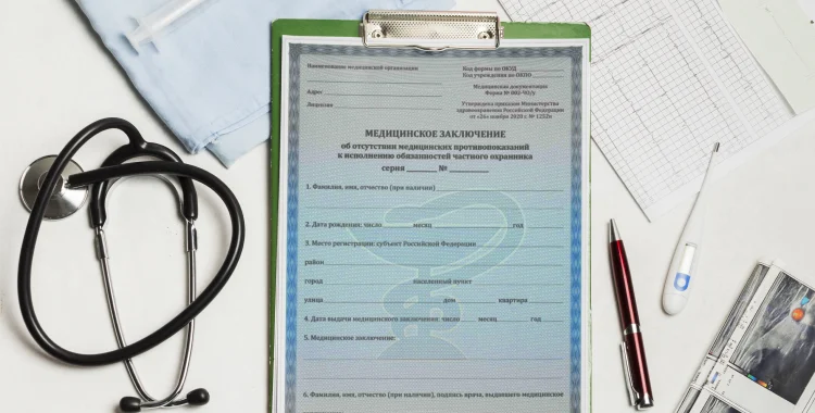 Справка в охрану представляет собой медицинский документ, устанавливающий физическую пригодность соискателя на должность, связанную с охранной деятельностью. Содержание справки соответствует форме №002 - ЧО/у. Медицинская справка — документ, который определяет занятость владельца в сфере охранной деятельности.